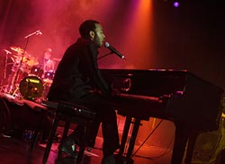 Han virker derimot mye mer komfortabel ved hans flygel enn ved scenekanten, hvor han faktisk ramler litt sammen og nøyde seg med litt publikumshilsing ala Michael Jackson. Slikt kan han egentlig vente med i 5 år til. Hele hans 7-piece band derimot var en svartkledd skygge som var mer besatt på å spille 100% korrekt enn å spille originalt og kult. Det ble rett og slett litt i det reneste laget, selv om koristene prøvde å legge inn litt morsom koreografi på de fleste låtene.